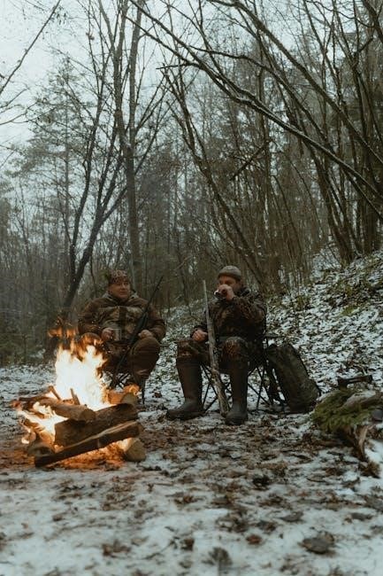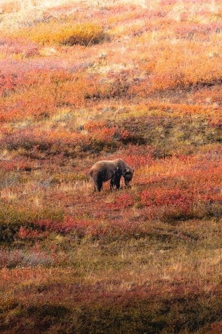 Create an immersive sensory bin inspired by “We’re Going on a Bear Hunt” to engage children in tactile exploration. Use a large bin filled with rice, sand, or water to represent the story’s terrains. Add small toy bears, twigs, leaves, and other nature-themed elements. Include printable signs and footprints from the PDF to enhance the theme. Kids can dig, discover, and recreate the bear hunt journey, fostering imaginative play and sensory development. This activity aligns with the book’s outdoor adventure theme, making learning fun and interactive.